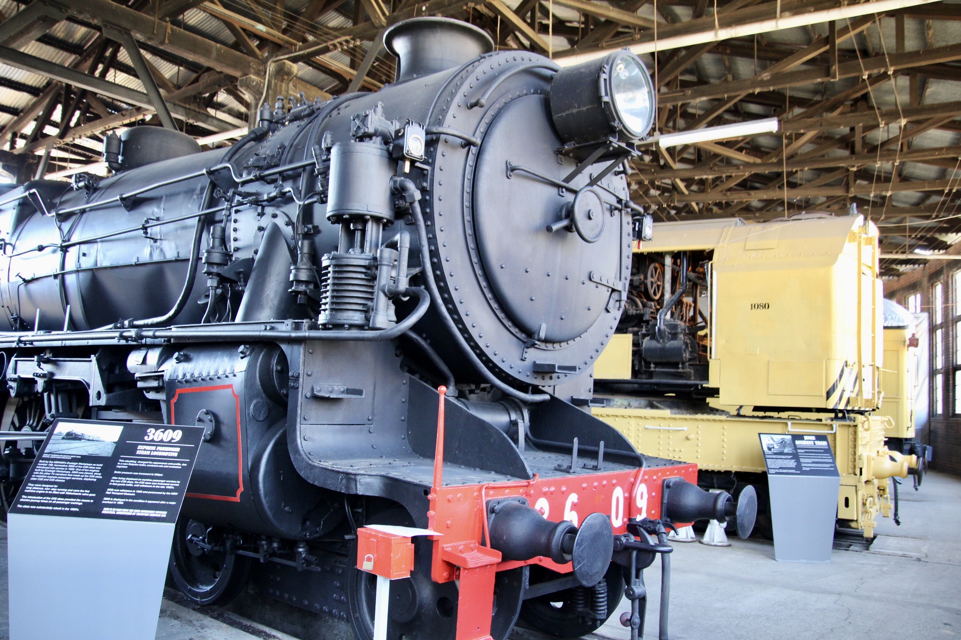 There is an extensive display of engines, carriages and specialist equipment in the museum section of the roundhouse. The equipment is well maintained and there are informative plaques which provide a brief history and additional details. Many engines and carriages are available for inspection, so you can get a sense of the varying degrees of comfort available in the carriages, or get a feel for the range of controls that engine drivers had to master to keep the machines working. Museum guides are also on hand and they provide personal insights into the displays. An illustrated list of the main exhibits is also available.