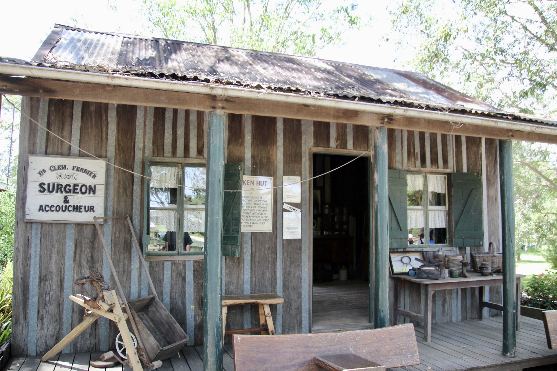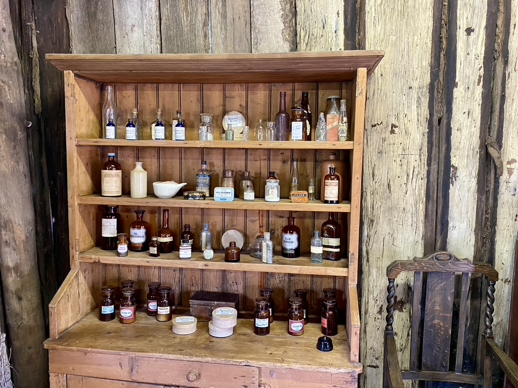 Inside Aiken’s hut is a collection of medical paraphernalia, including this array of old medicine bottles. Many of the buildings contain displays which provide insights into different occupations and ways of living. Panels provide additional information and context into life in a very different time.