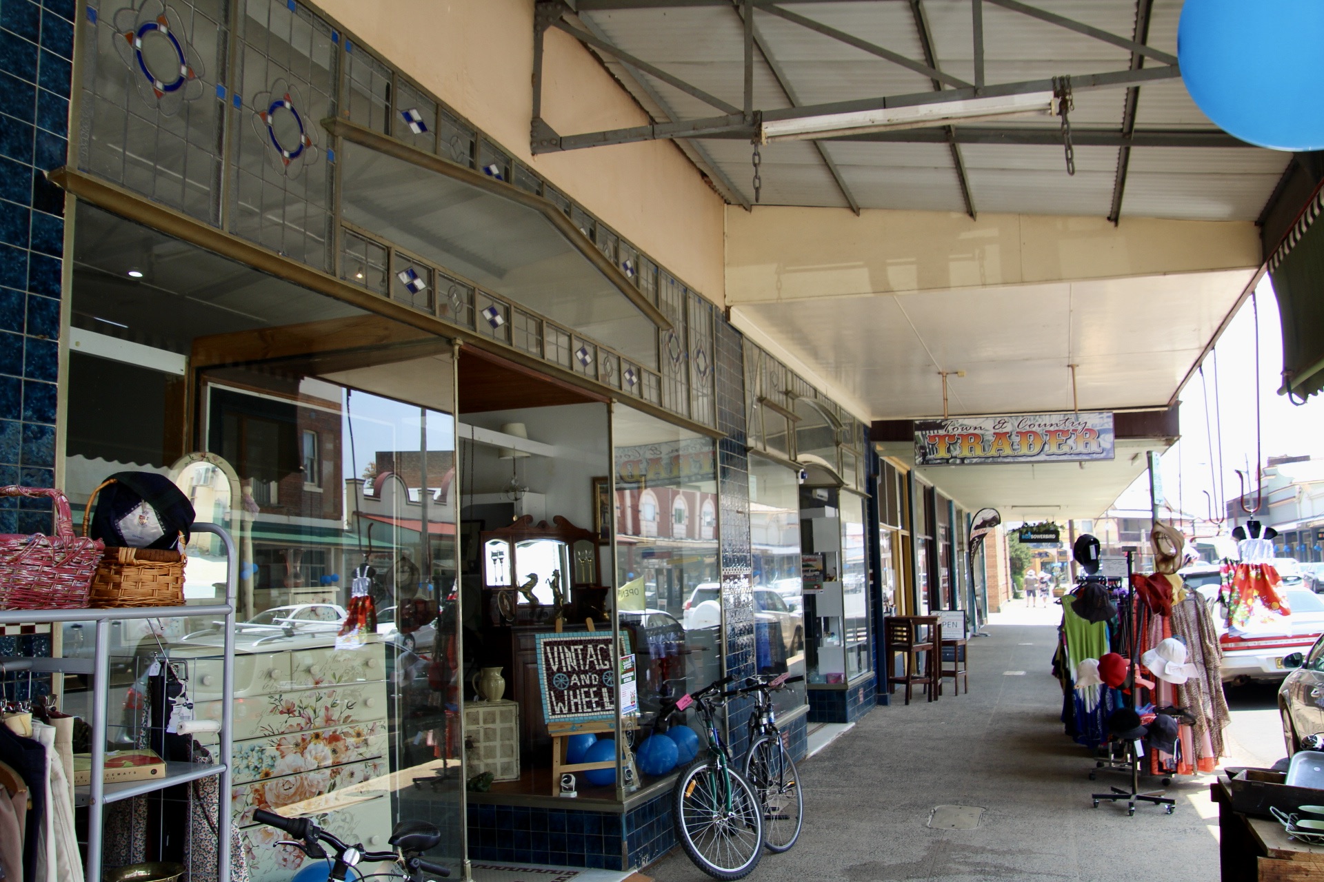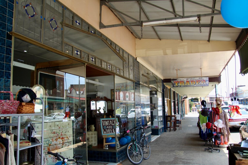 During a brief traipse through Canowindra on a warm day, I was taken in by the unusual layout of the town centre, and the variety of cafés, craft, and speciality stores. The old-fashioned shopfronts of many of the buildings were a highlight, including stained-glass decorative features.