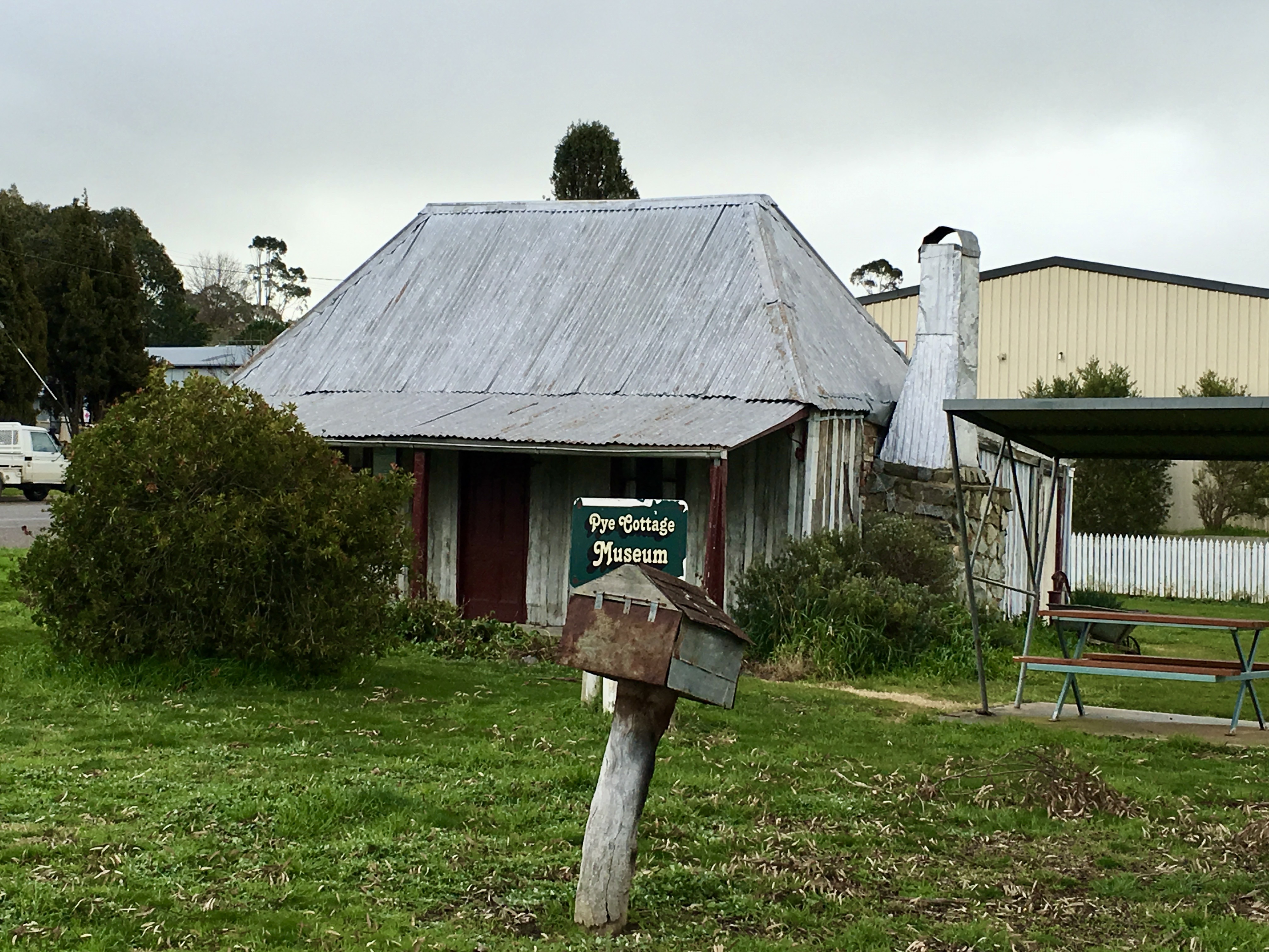 The Hume Highway used to run through the centre of the town, with all Sydney-Melbourne traffic passing through, but after a highway bypass took effect from 1993, the town has reverted to a quieter pace of life. There are various historic buildings which illustrate the town’s development, particularly from the 1870s onwards. Pye Cottage, shown above, was built in 1860 at Dalton, which is about 10 km north-west of Gunning. It was moved to Gunning in 1979 and is a local museum.