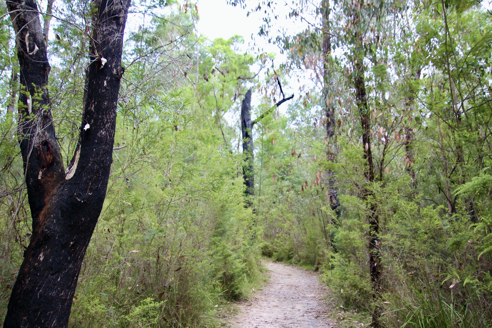 The site has been devastated by bushfires multiple times. In 1994, all buildings were destroyed. The site was rebuilt, and the 2019/2020 bushfires destroyed 95% of the vegetation and 80% of the infrastructure. There are remnants of bushfire damage on some tracks, but regeneration is significant.