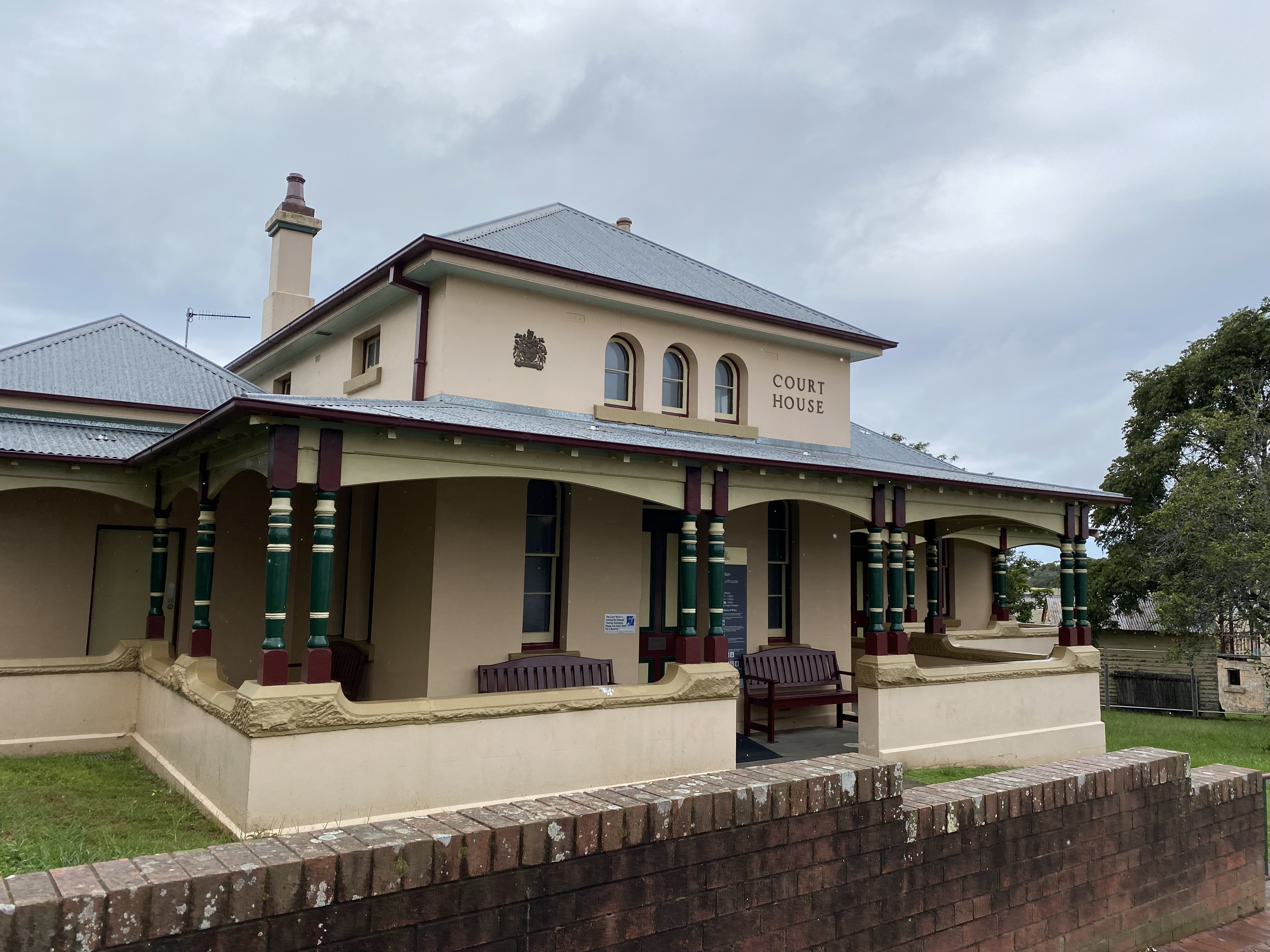 The Milton courthouse was built in the 1870s to a design by Colonial Architect James Barnet. There were substantial alterations in 1896 by Government Architect Walter Liberty Vernon. The courthouse is open a couple of days each week.