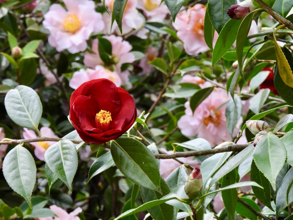 The gardens have been established over several decades by Wayne and Sue Tapping. Opening times are seasonal: autumn colour can be experienced from March through to early June, and spring flowers are on display from August to early November. My visit in late August was perfectly timed to enjoy the vast range of camellias in bloom. These are one of my favourite flowers, and there were stunning displays throughout the garden. Images of some of the extensive camellias at Wildwood can be found here.