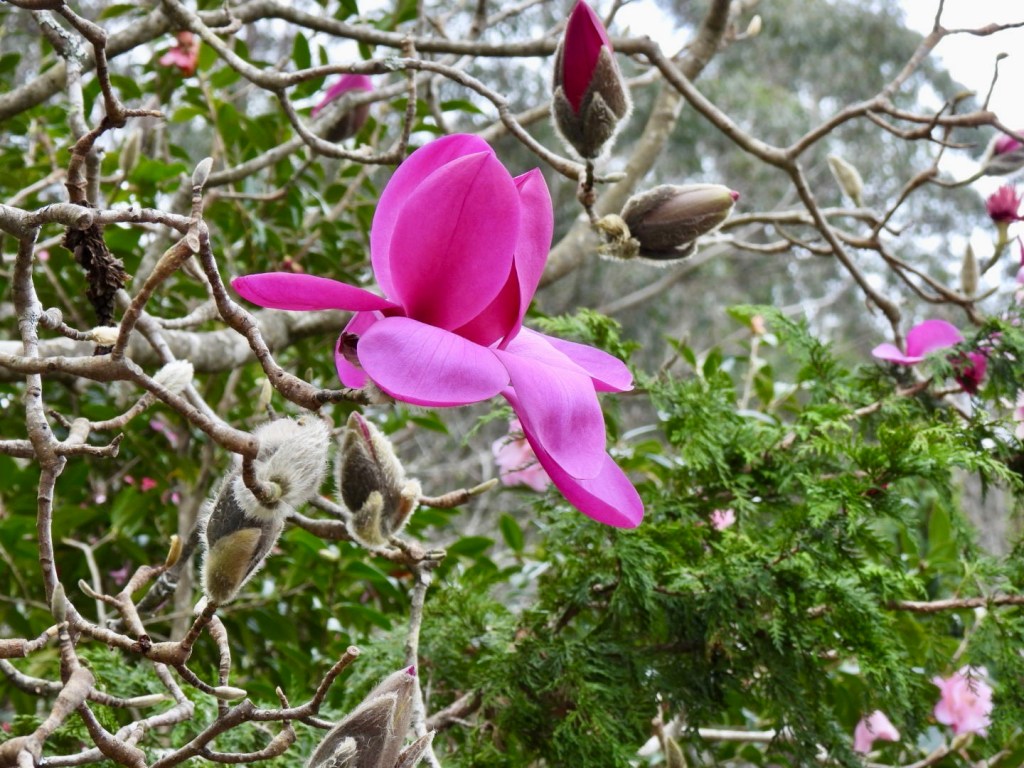 Another highlight was the birdlife drawn to the garden. There were red-browed finches, king parrots, currawongs, New Holland honeyeaters, whipbirds and grey fantails, just to name a few. The Eastern Spinebill, shown above, was one of many birds, butterflies, and insects enjoying the flowers in Wildwood.