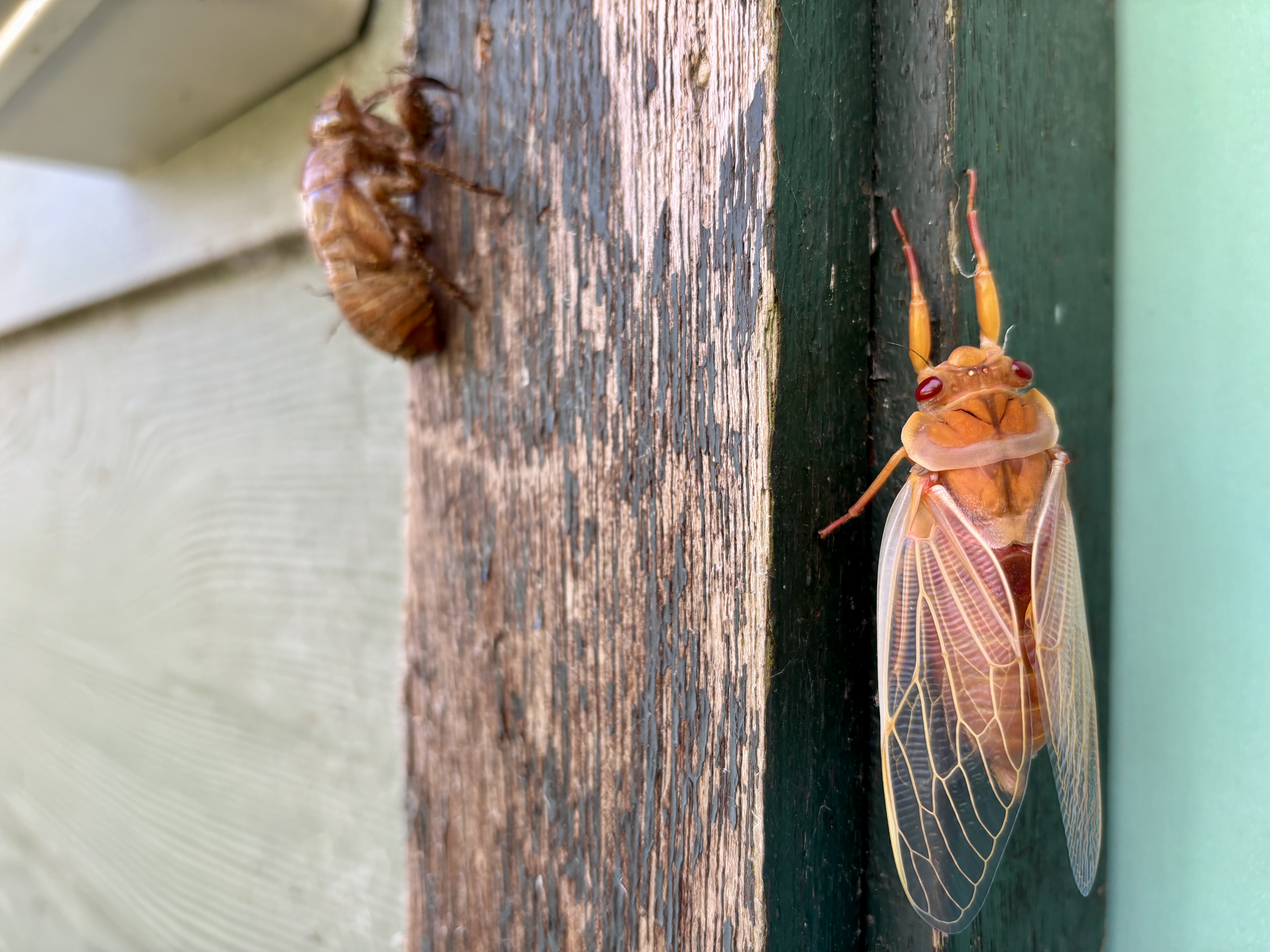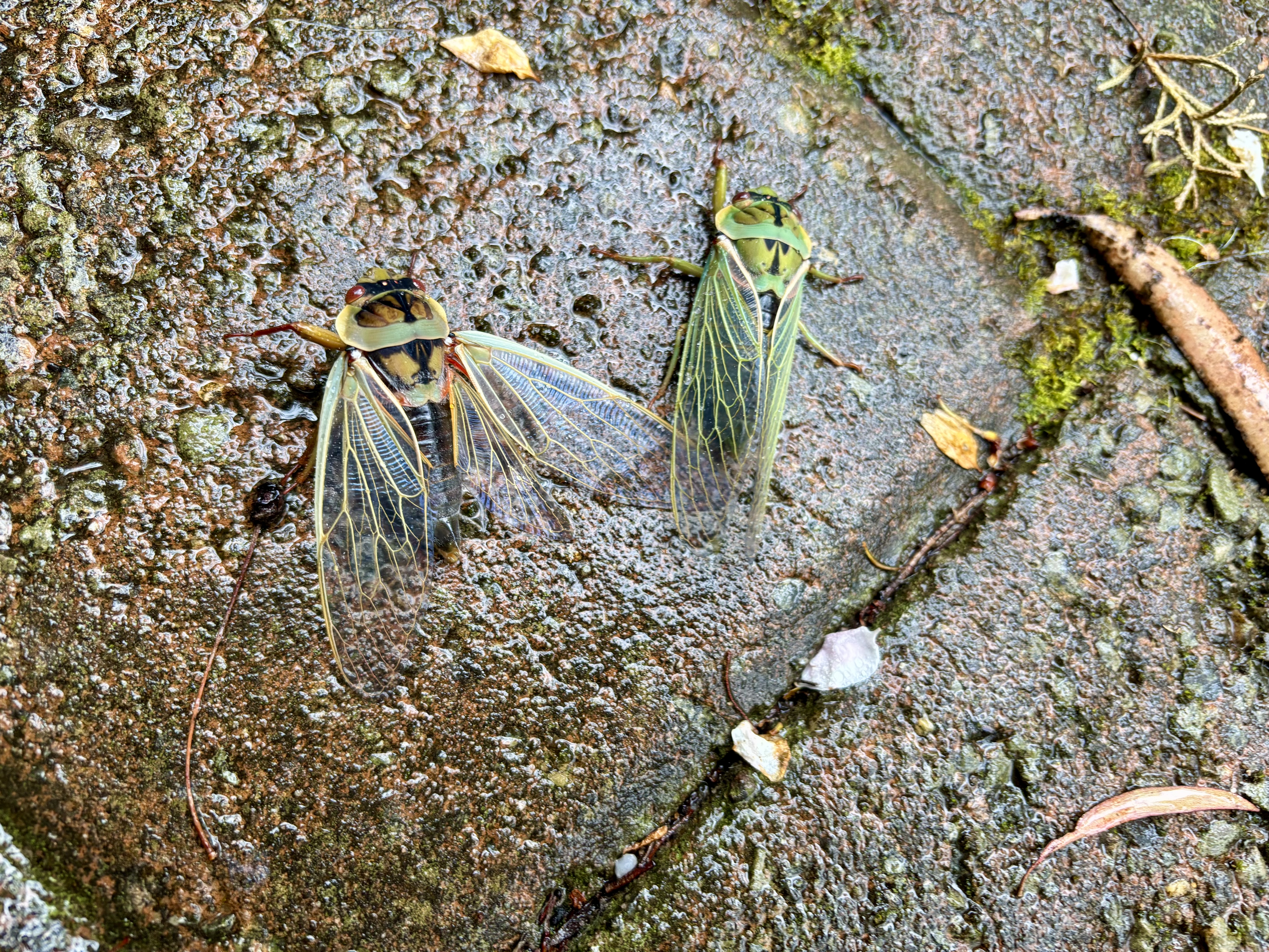 After being underground for seven years, the sheer volume of cicada numbers that emerge is an anti-predator defence. Almost all the population of periodical cicada species emerge in a synchronised manner, maturing into adults in the same year and within days of each other, with no cicadas in the years between. This deliberately overwhelms potential predators to ensure success in the breeding season, and is called ‘predator satiation’. Consumers of cicadas include birds, bats, spiders, wasps, tree crickets and ants. I’ve seen many birds flying off with a cicada in their beak over recent weeks.