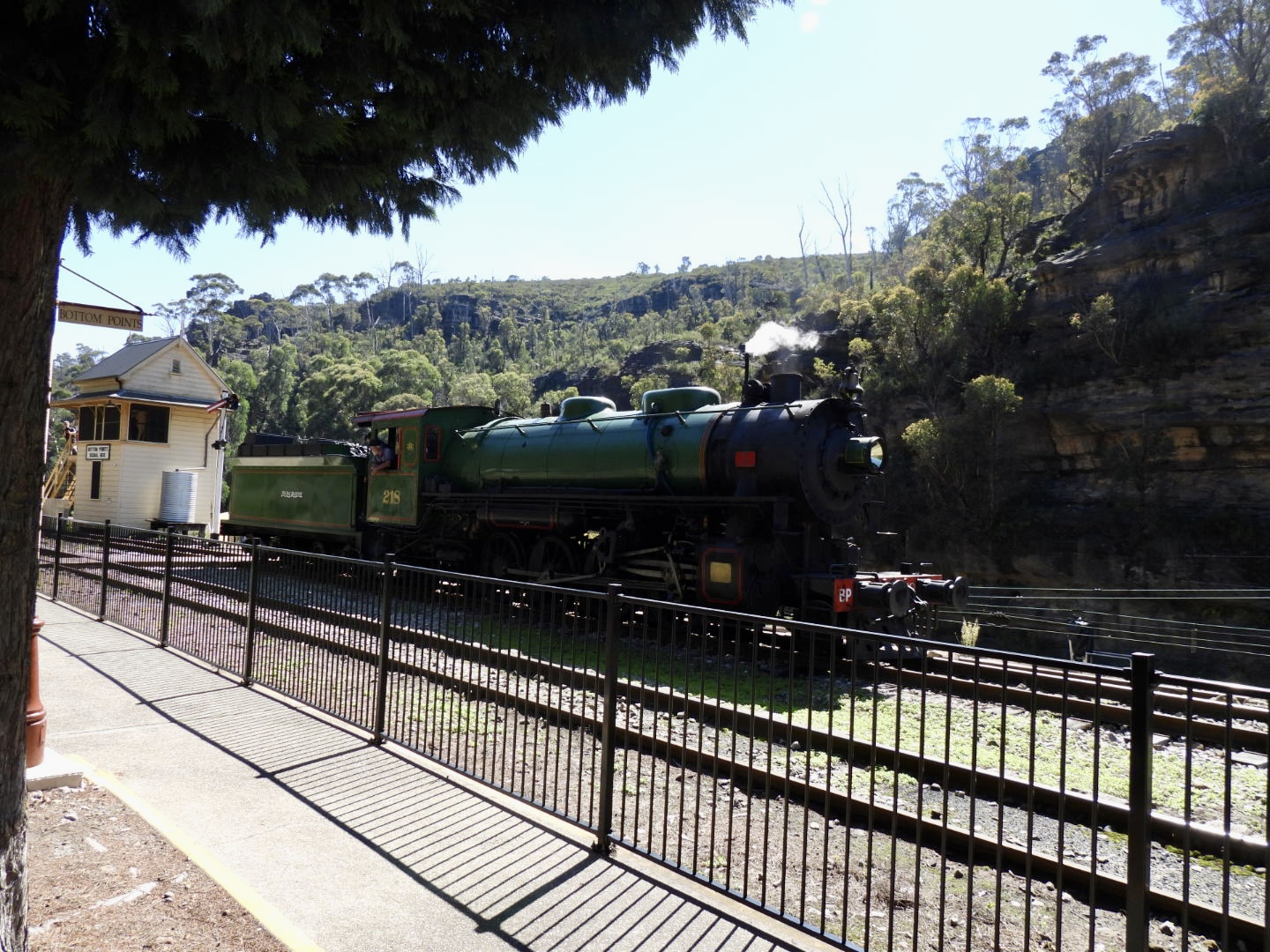 The railway is largely run by volunteers, with only a few paid employees. These volunteers are knowledgable about the trains and the heritage of the Zig Zag, and their enthusiasm was infectious. Soon after leaving Clarence, we were steaming our way through a tunnel, and there were wonderful views of one of the three viaducts as we approached the Top Points stop, best viewed from the right-hand side of the carriage. The stop at Top Points provided an opportunity to view the surrounds from an over-bridge as the engine took on water. Engine 218A was built in Philadelphia USA, and was assembled and based in Cairns, Queensland. It was in operation from 1943 through to 1969, and there is a summary of the engine’s history here.