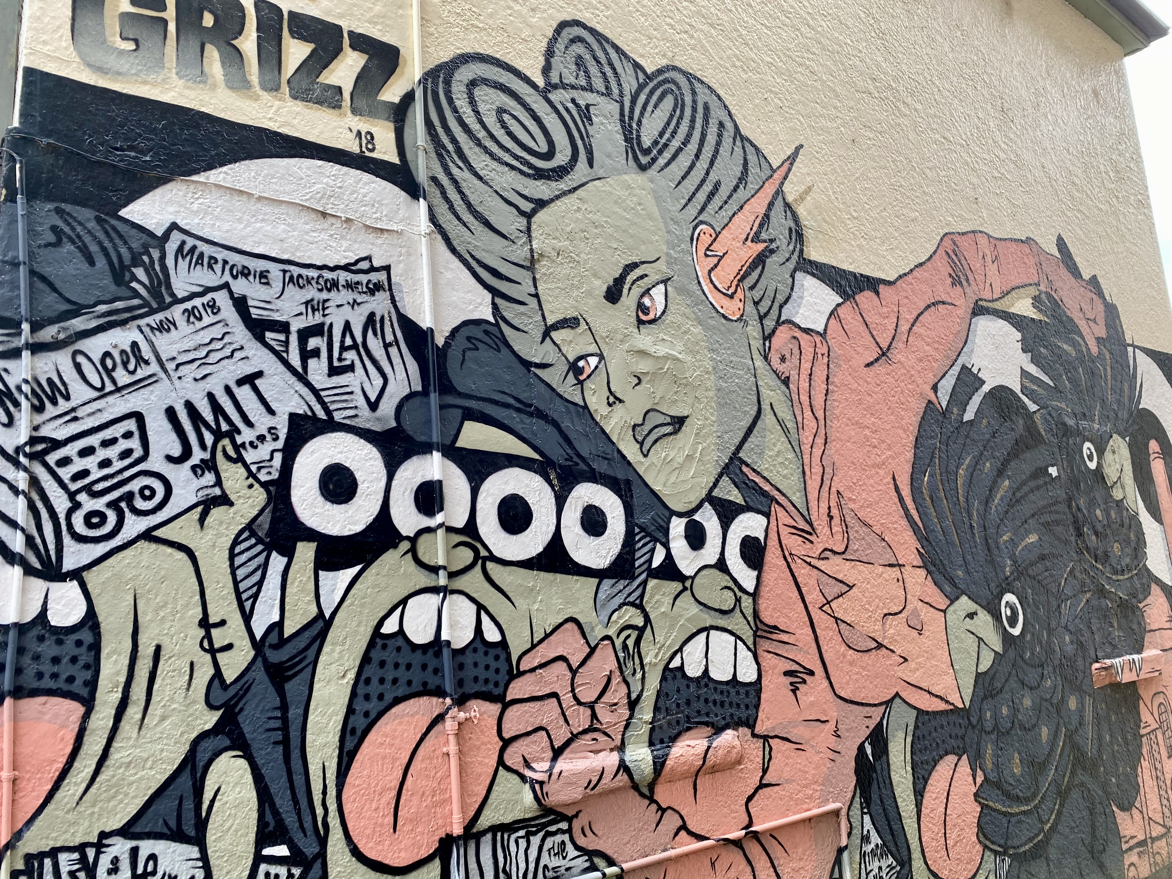 Inspired by the locality, the mural above was created by Gerard Brown (Le Grizz) in 2018 in a mere 4 1/2 days as a Homage to Lithgow. It includes Marjorie Jackson-Nelson, the “Lithgow Flash”, and black cockatoos. The mural is located on the side of a commercial premises.