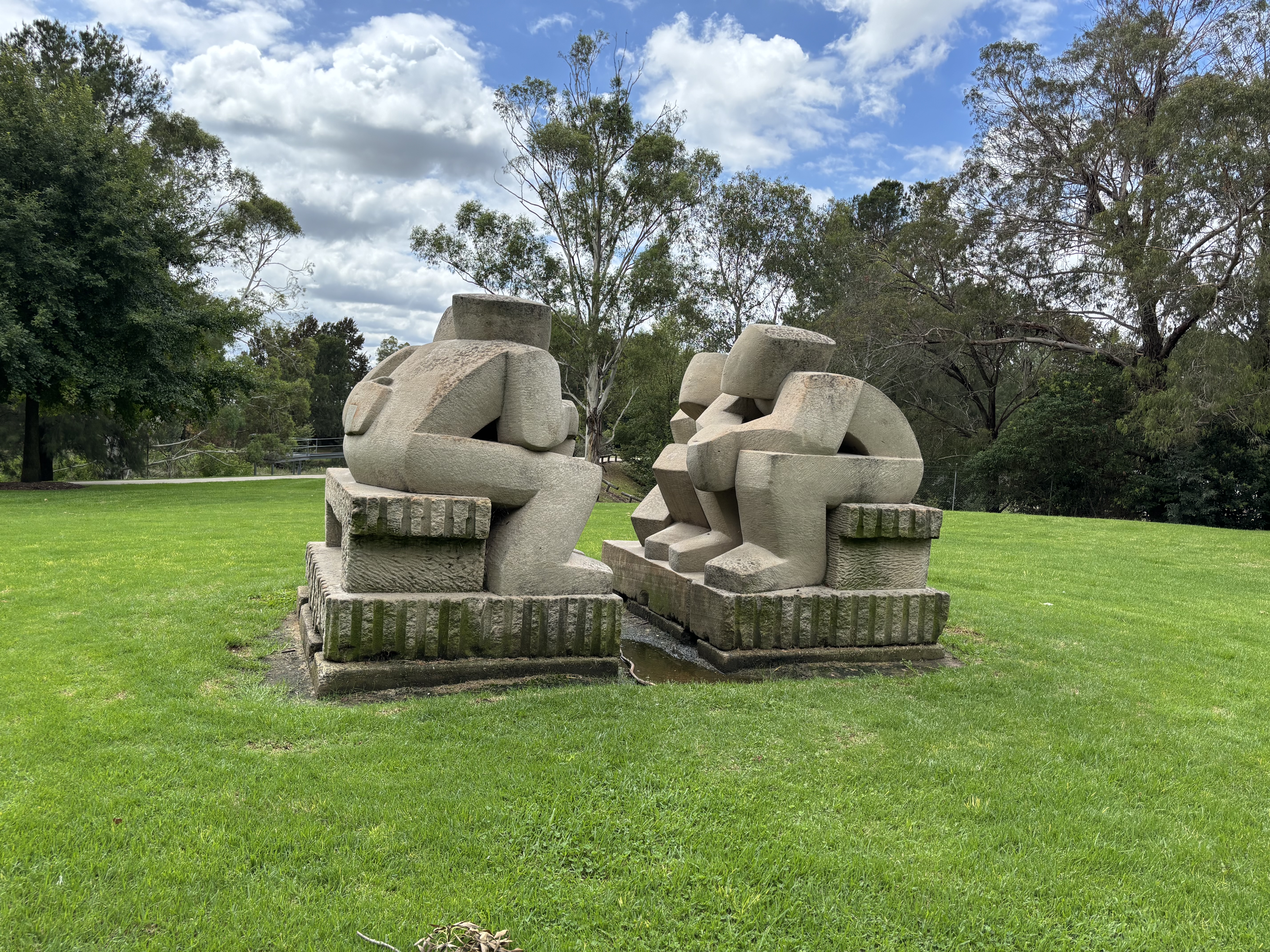 Also located in the park is the sculpture titled Conversation by Stephen Hart. It was created from two 15 tonne blocks of Bondi sandstone, their rough surfaces facing one another as if paused mid exchange, and represents interaction. According to a detailed article available here, the work began with an interest in exploring the machinery of communication.